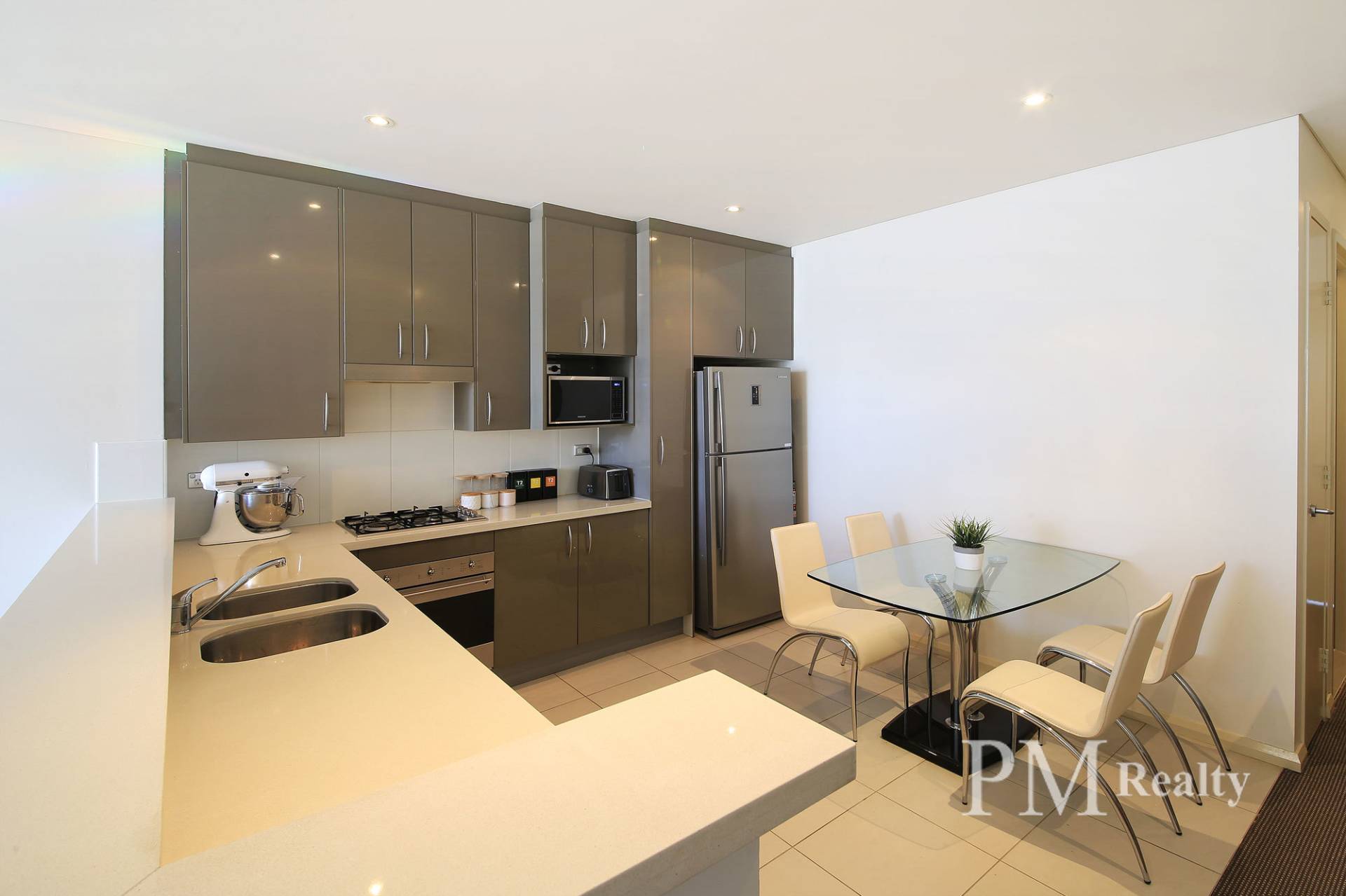 - Modern kitchen with stainless steel appliances
