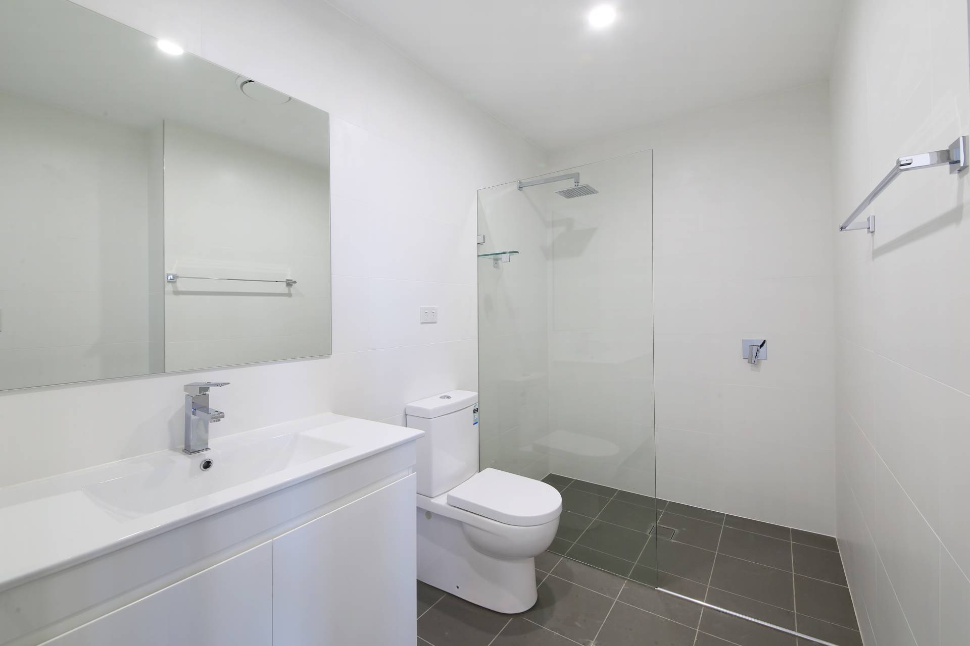 - Sleek modern bathroom