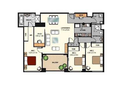 Fully Furnished 3 Bedroom Apartment Plus Study