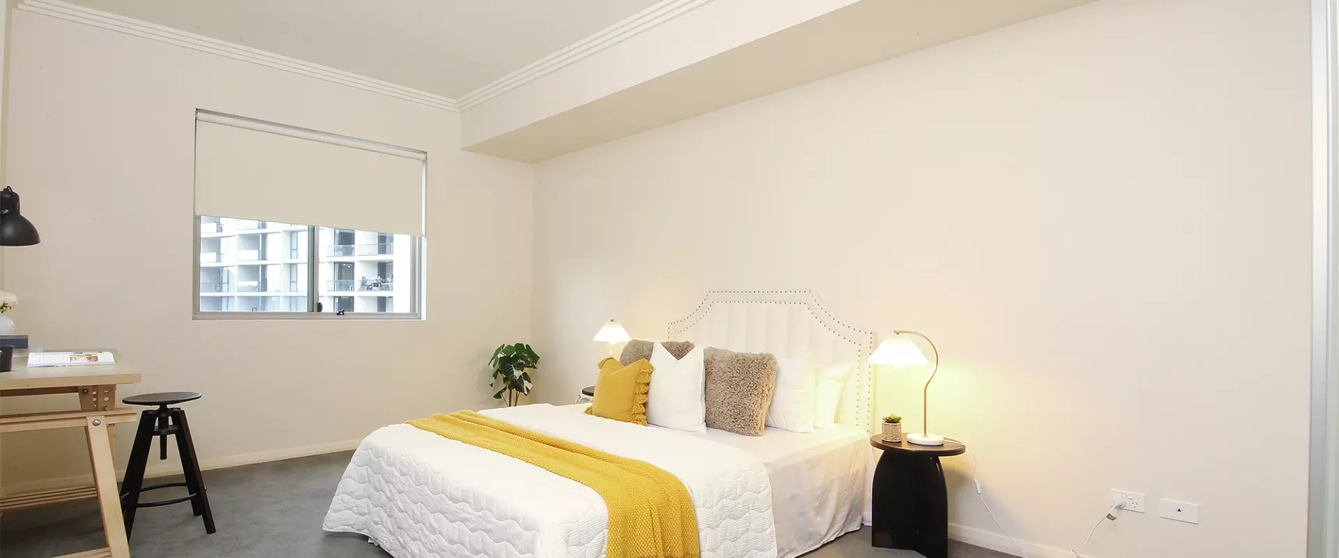Spacious bedroom with built-in wardrobe