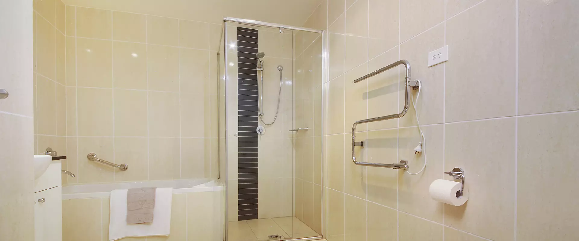 Stylish Bathroom with Bathtub and Heated Towel Racks