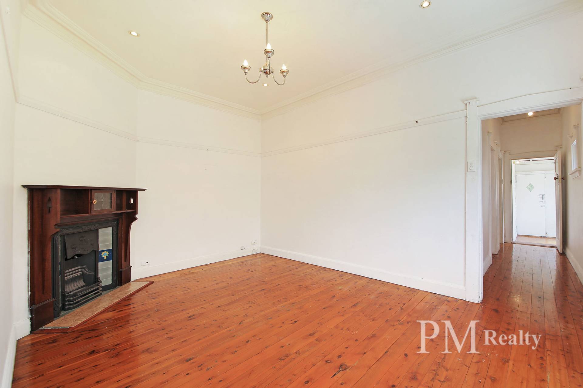 - Spacious living area with ornamental fireplace