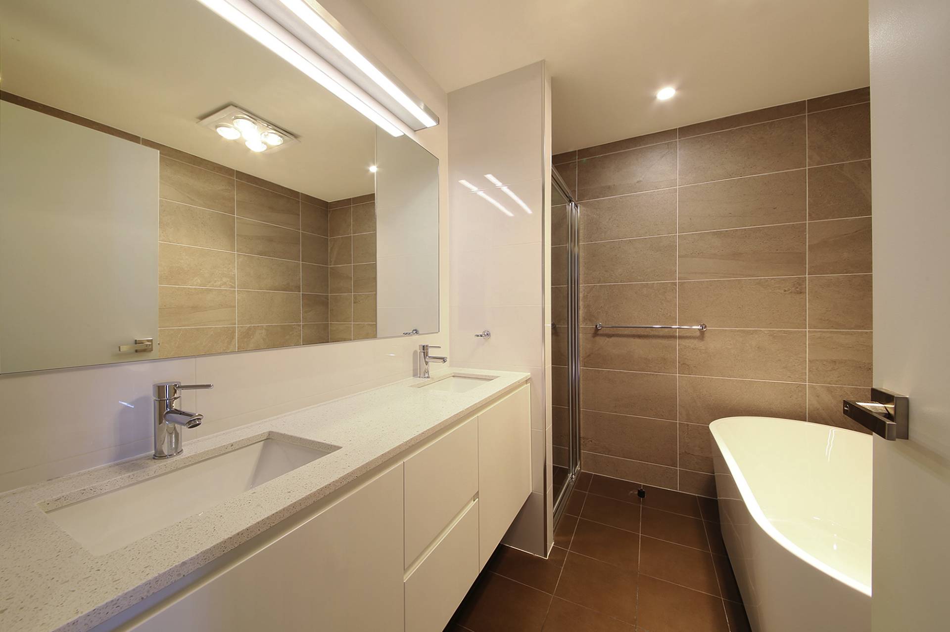 - Elegant main bathroom, lavish deep bath, beautiful feature tiles